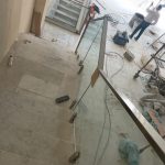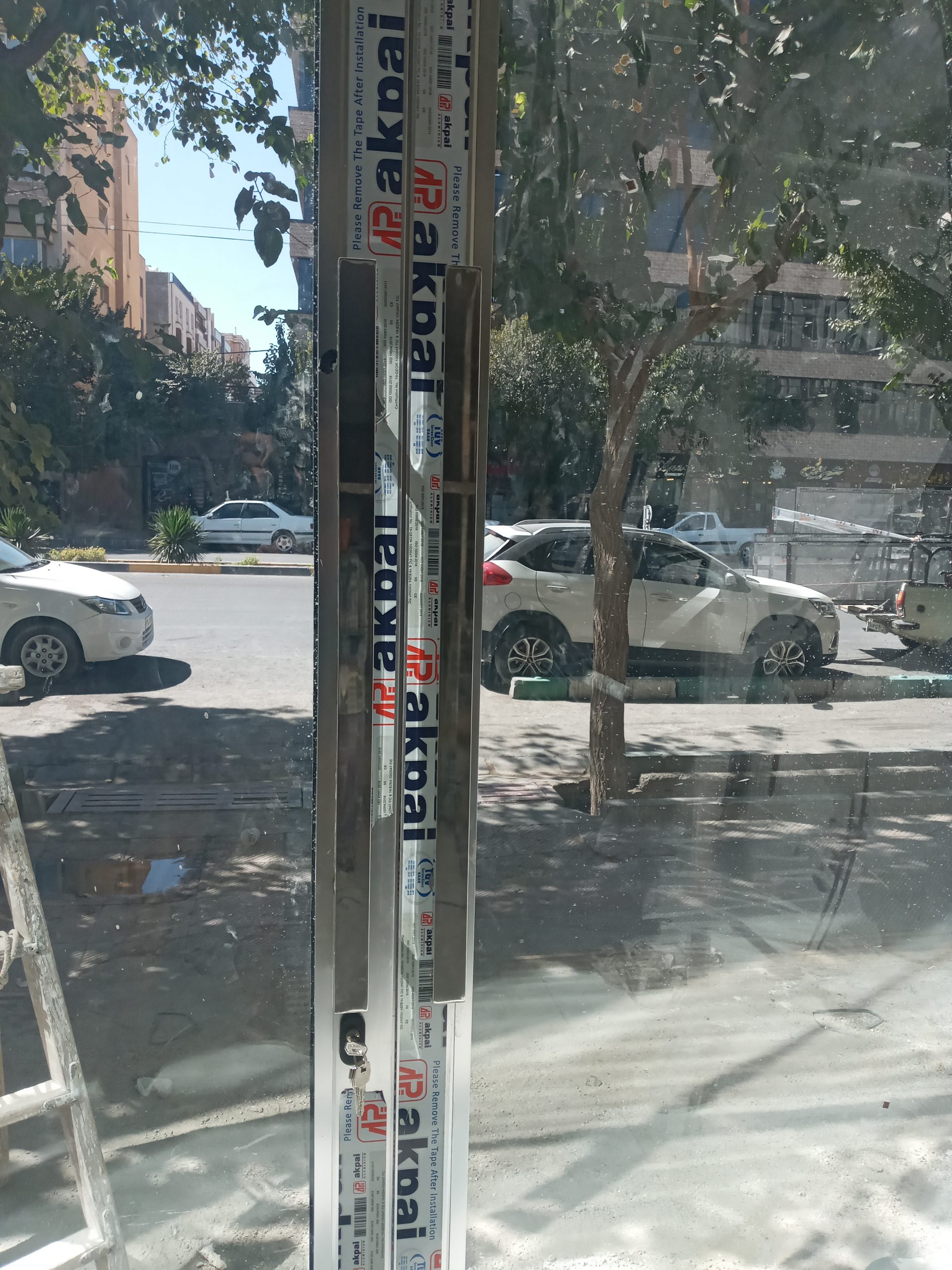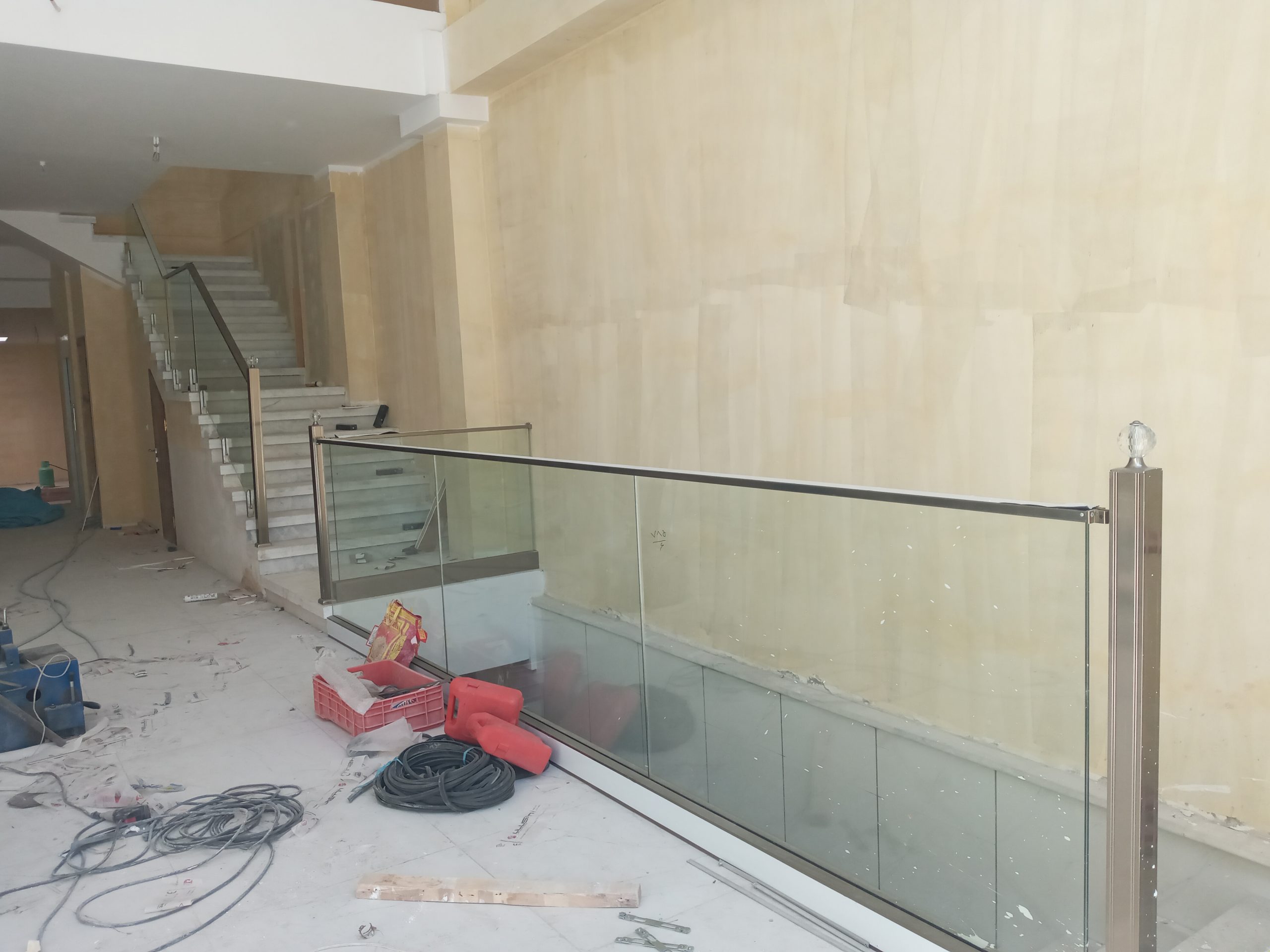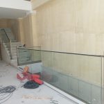 درب الومینیوم نرمال ارتفاع 300 ونرده شیشه ای و کرتین وال تقویتی با فولاد